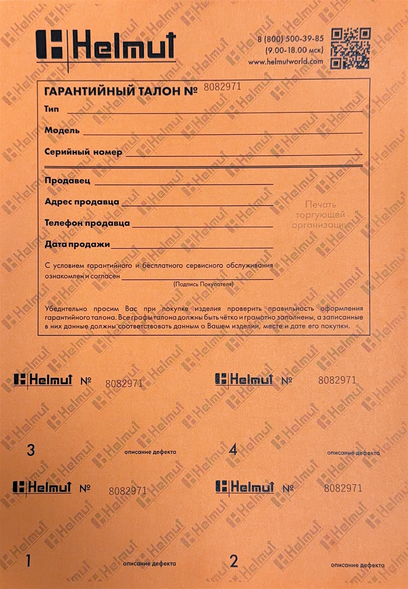 Если вы находитесь в Москве, то в случае поломки вы всегда можете привезти оборудование в наш магазин, и мы сами отвезём его в сервисный центр. Или вы можете сделать это самостоятельно. Адреса сервисных мастерских: https://helmutworld.com/servis/
